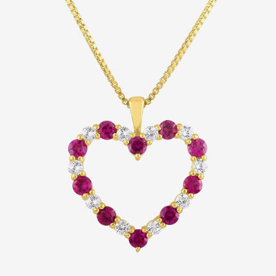 Womens Lab Created Red Ruby 10K Gold Heart 18 Inch Pendant Necklace