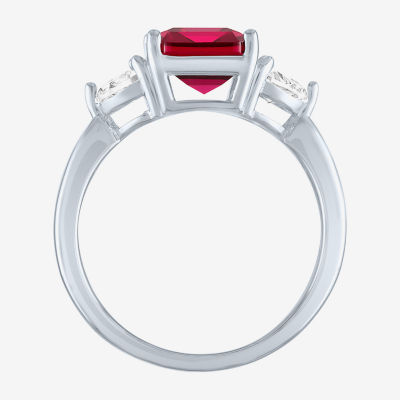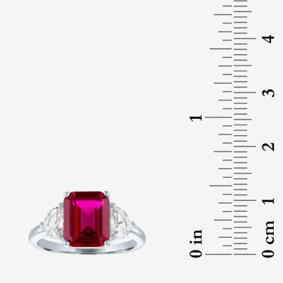 Womens Lab Created Red Ruby Sterling Silver Side Stone Cocktail Ring
