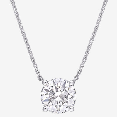 Womens Lab Created White Moissanite 14K White Gold Round 18 Inch Pendant Necklace