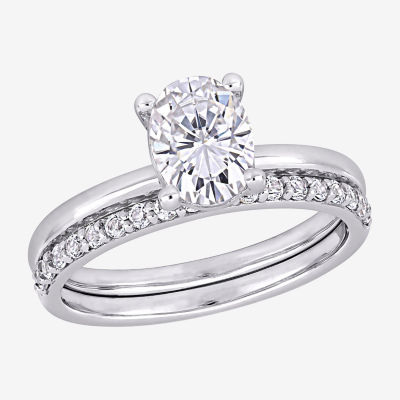 Womens Lab Created White Sapphire 10K White Gold Oval Solitaire Bridal Set