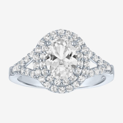 Womens Lab Created White Sapphire Sterling Silver Round Halo Cocktail Ring