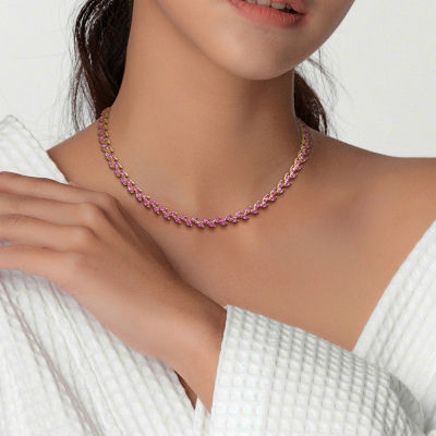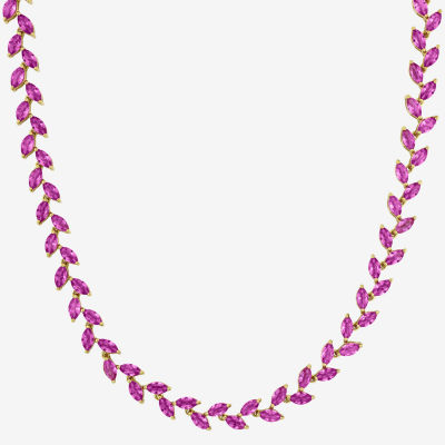 Womens Pink Sapphire Sterling Silver 17 Inch Tennis Necklace