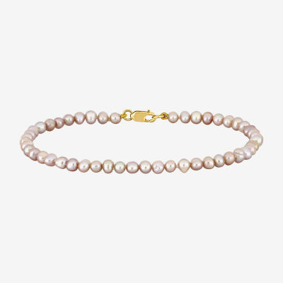 Womens White Cultured Freshwater Pearl 14K Gold Strand Bracelet