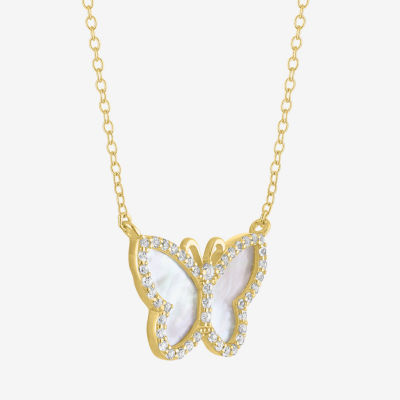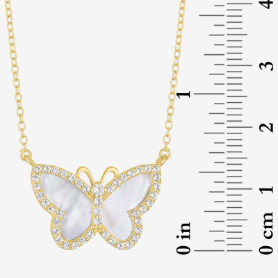 Womens White Mother Of Pearl 14K Gold Over Silver Butterfly 16 Inch Pendant Necklace