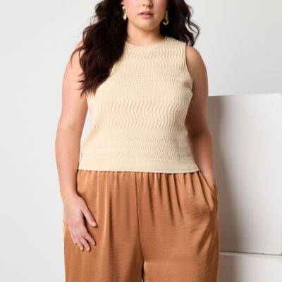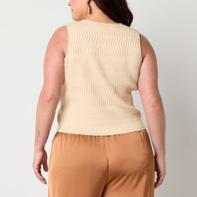 Worthington Plus Womens Crew Neck Sleeveless Pullover Sweater