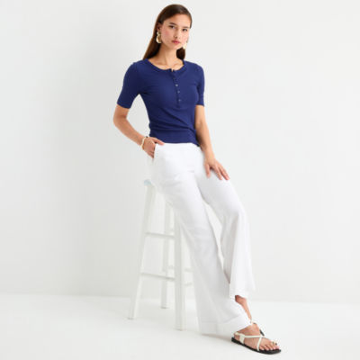 Worthington Womens Short Sleeve Regular Fit Henley Shirt
