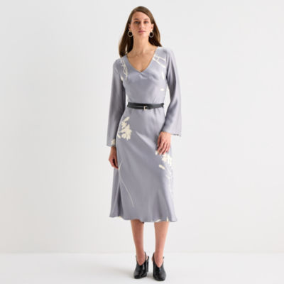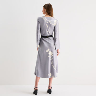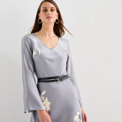 Worthington Womens Long Sleeve Floral Satin A-Line Dress