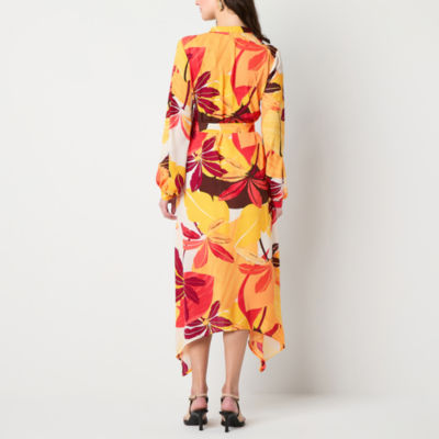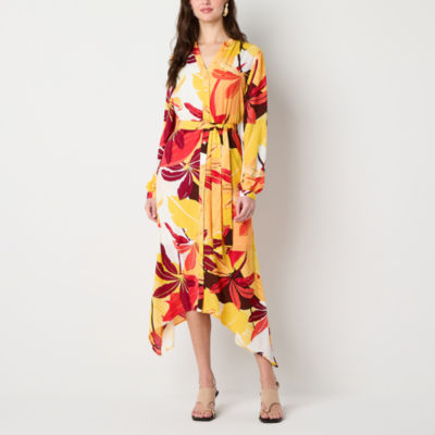 Worthington Womens Long Sleeve Floral Shirt Dress