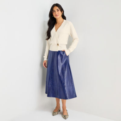 Worthington Womens Tall Faux Leather A-Line Skirt