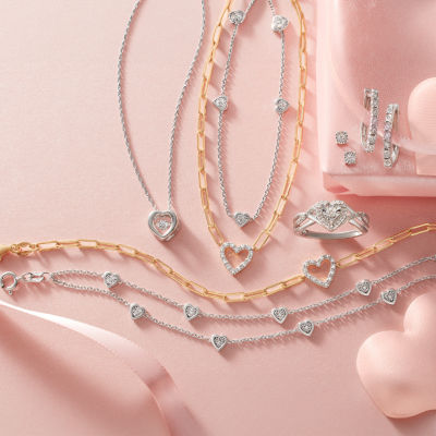 20 Reviews2 Questions & 0 Answers2832088productYes Please! (G-H / I1-I2) Womens Diamond Accent Lab Grown White Diamond Accent 14K Gold Over Silver Heart Charm Bracelet12345678Add to CartProduct DetailsShipping & Returns Shop The LookReviews(20)Questions & AnswersAdd To Cart