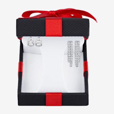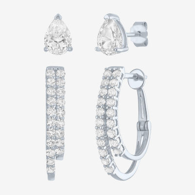 Yes, Please! Womens Lab Created White Sapphire Sterling Silver Pear Round 2 Pair Jewelry Set